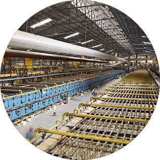 100吨中铝球球磨机、意大利“西斯特姆”滚筒雕刻印花机等,438米长的全自动工控辊道窑16条,计算机控制系统的7200T自动压机,年生产能力超过7000万平米。